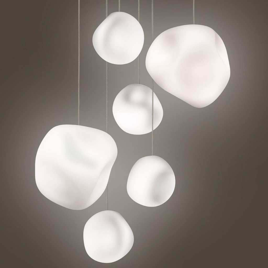 De Hoba, ontworpen door de gerenommeerde ontwerper Vincent Van Duysen, is geïnspireerd door de zachte, vloeiende vormen van stenen die door de natuur zijn gepolijst. Deze inspiratie vertaalt zich in een organische, asymmetrische vorm die een gevoel van rust en harmonie uitstraalt. De lamp lijkt haast te zweven, een subtiel maar krachtig middelpunt in elke ruimte.